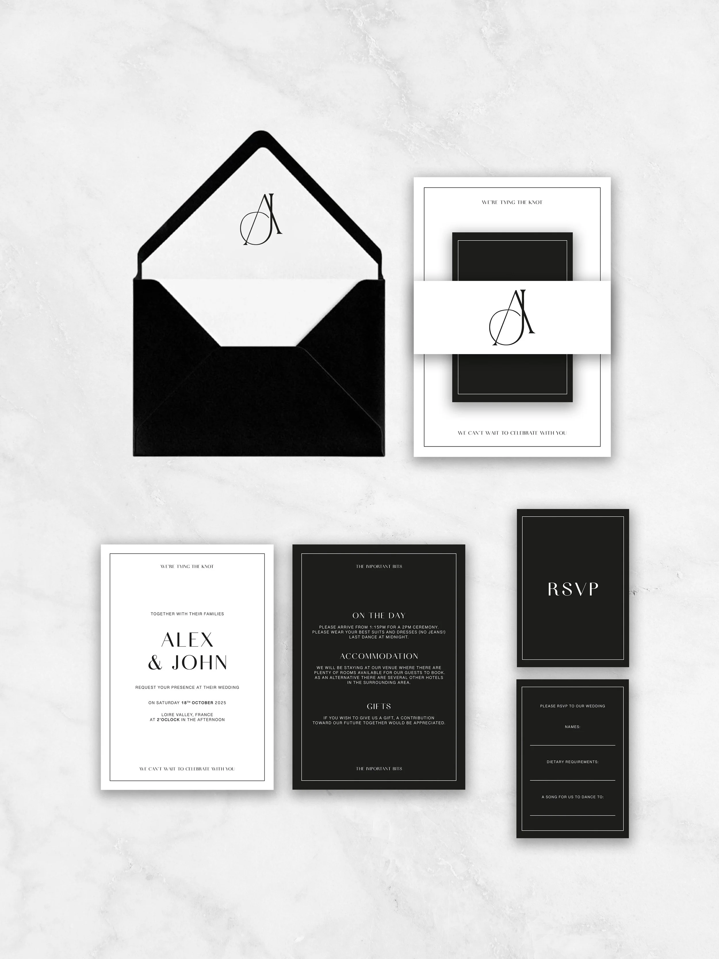 Every wedding is unique and your stationery should be too. From ‘Save the Dates’ and Invitations to on-the-day pieces, all of my designs are bespoke and tailored to reflect your style and vision. The prices below are provided as a starting guide, as every detail from colours and fonts to finishing touches and wording can be personalised to create stationery that is truly yours.